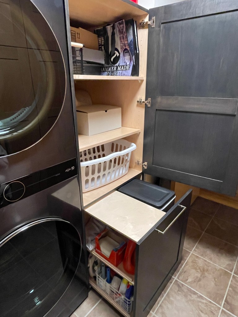 We recently asked Bryan to fabricate a cabinet for our laundry area and to add pull-outs to some of our existing kitchen cabinets. We are absolutely thrilled with the products he created and installed. Bryan guided us through the process, showing us options and making suggestions for things we hadn’t thought of. The big, empty space in our laundry room now houses a beautiful, highly functional cabinet for laundry supplies, recycling and extra storage. Bryan’s communication and timeline for work completion were exceptional! We would highly recommend his work.