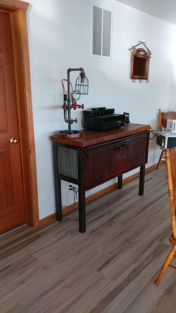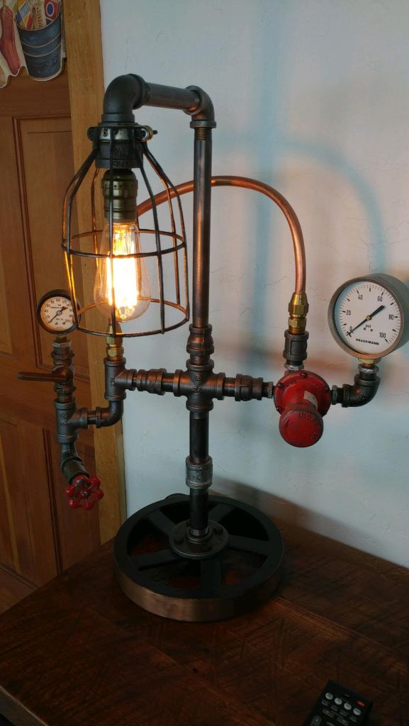 Unbelievable Work and Unbelievable Service. My wife and I were traveling through the Minneapolis airport when we passed by a store with a few remarkable lamps in the window made from old plumbing parts. Really cool. A small card next to the item highlighted the work as “Steampunk Lamps”, by one Bryan Skaudis of Apple Valley Designs, LLC in Minneapolis, MN. Rather than purchasing the lamp at the airport, we decided to call Bryan instead, and here is where the story really begins. After a quick internet search, we tracked down Bryan’s number. True it was a Sunday, but he actually picked up. During the conversation, we also identified that not only did he create amazing lamps, but wonderful, one of a kind furniture as well. Over the next several days, Bryan sent photos of different parts with which to make the lamp. Additionally, by then, we had decided to go ahead with a custom hutch built around a beautiful vintage 1960’s ford pickup tailgate- Amazing. He sent pictures at every step of construction and included us in all of the important decisions (parts, colors, stains, etc.) This exemplary work was accomplished in little over two month’s time and sent to us. Bryan was absolutely amazing to work with. These pieces are interesting, unique, and scream old world charm. This recommendation for Bryan’s work comes with nothing but the highest praise. You will not be disappointed.